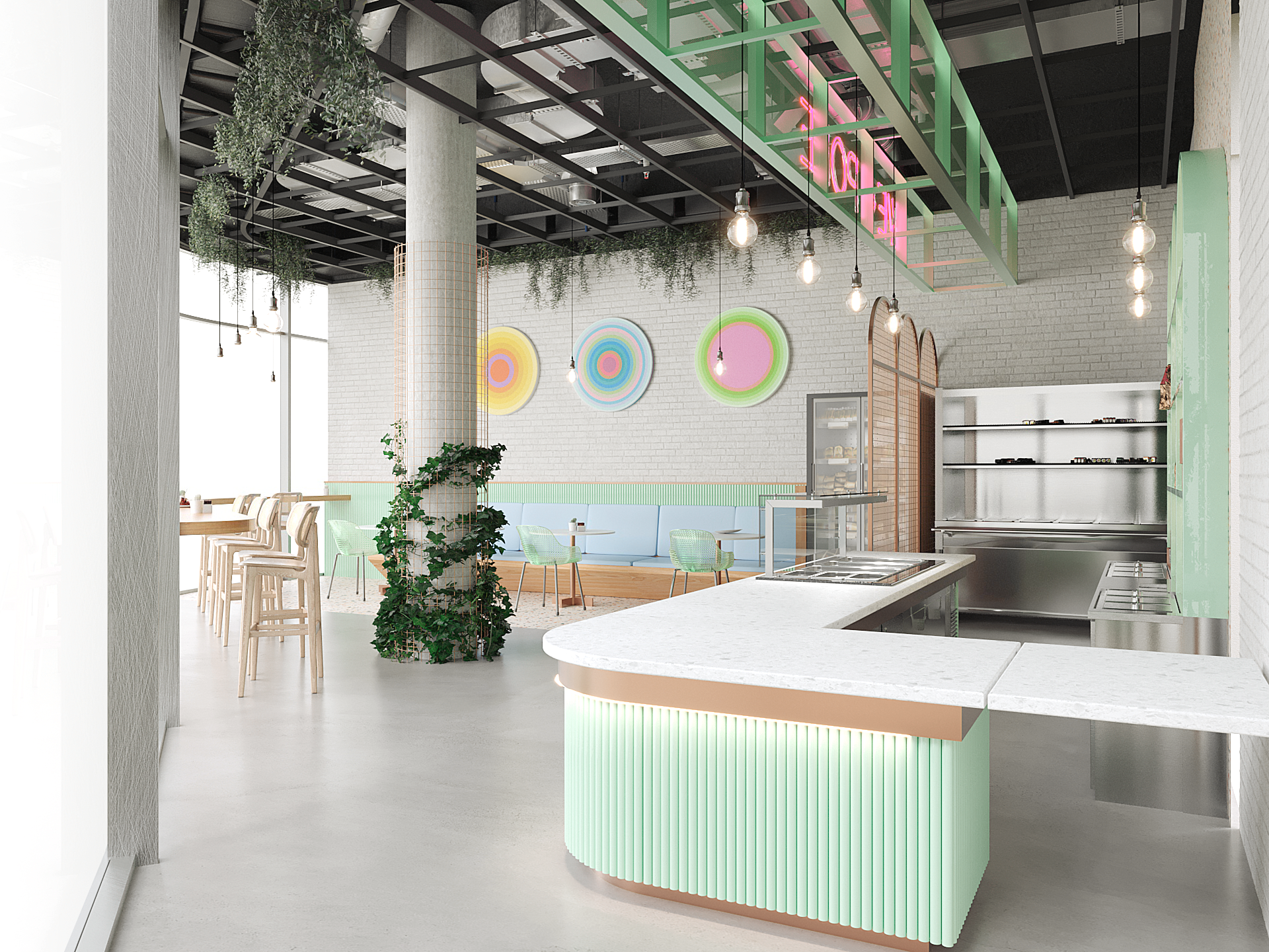 SMAD's first cafe/restaurant design is for a poke bowl restaurant. The idea behind designing this small 75 sqm space was to make it look light and airy, helping visitors to have a happy experience, while always highlighting the delicious cuisine!